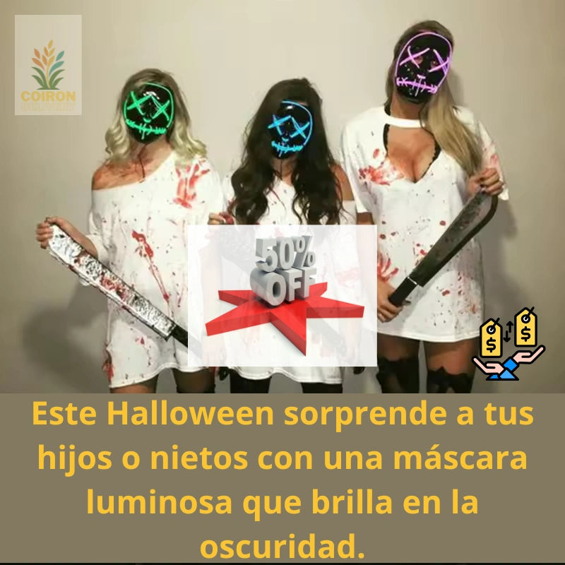 “Este Halloween sorprende a tus hijos o nietos con una máscara luminosa que brilla en la oscuridad. 👨👩👧👦✨